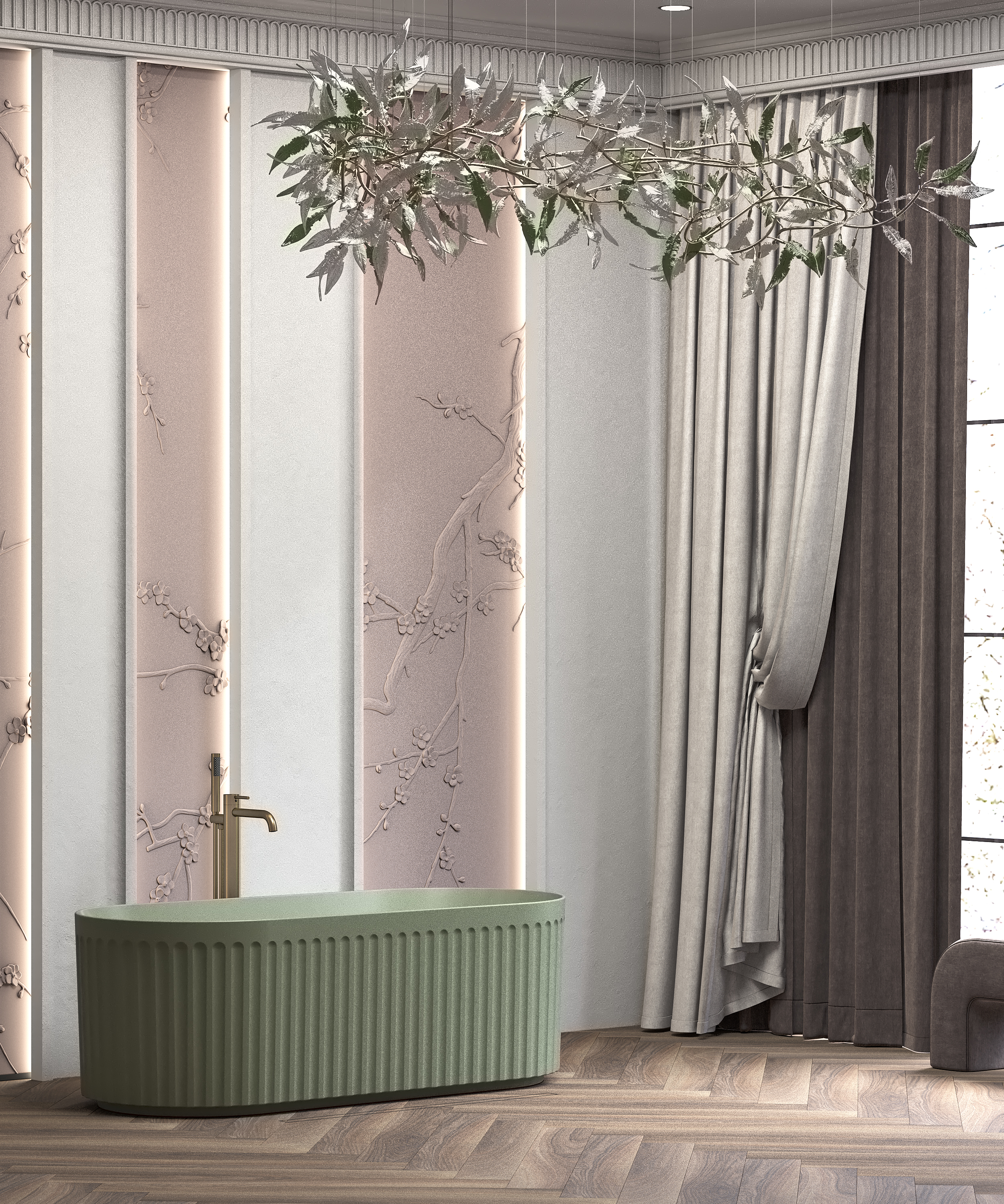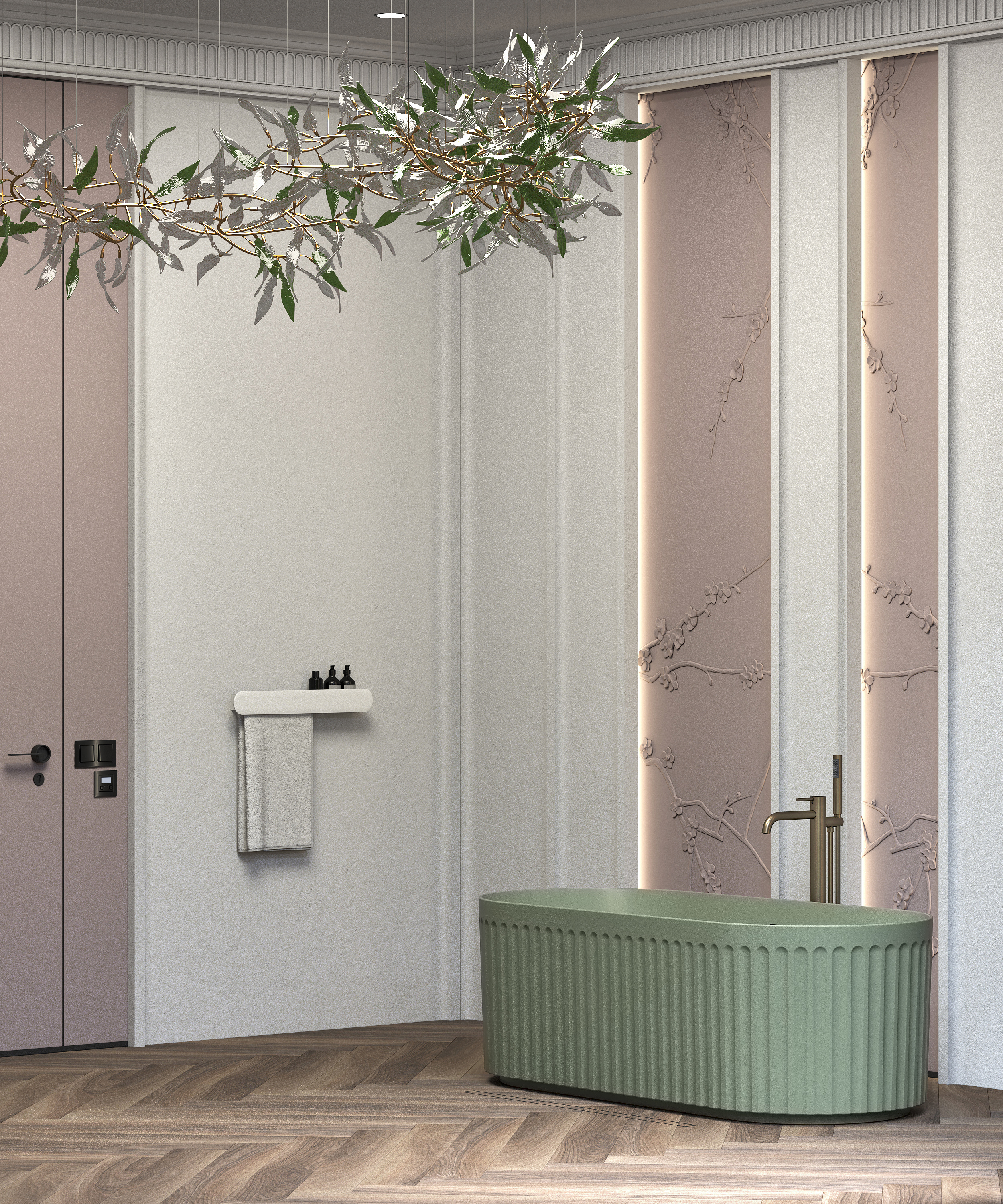 В такой ванной комнате можно легко отключиться от внешнего мира и погрузиться в особую атмосферу.